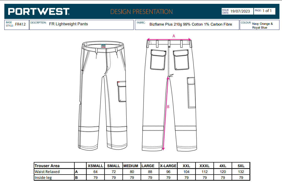 Portwest FR Lightweight Anti-Static Trousers FR412