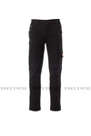 All-season unisex trousers, “4-way stretch”, with side elastics and belt loops, closure with zip and customised button. On the front, they have two rounded pockets, a coin pocket on the right, a safety pocket closed with a zip on the left. On the front of the left leg, there are 3 pockets: a horizontal pocket closed by a zip, a pocket with shaped flap closed with Velcro and equipped with a badge holder and a small vertical pocket closed by a zip. On the front of the right leg, there is a retroreflective stripe. Both trouser legs are equipped with a top-opening knee pad in Nylon Oxford 500D. On the back there are: a pocket with flap closed with Velcro and a pocket without flap but with 2 retroreflective stripes, a hammer ring (right leg), an open tape measure pocket (right leg) and a phone pocket with flap and Velcro (right leg), retroreflective inserts at knee height (both legs), contrasting kick tapes (both legs). The trousers also have side seam topstitching and contrasting bartack reinforcement stitching in various points. The middle (Italian) sizes 48-50-52 have an 82 cm regular internal leg length.